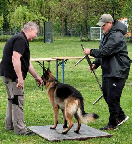 Kettensäge, Bierbankgarnitur, herunterfallende Ketten, Revolverschüsse und noch vieles mehr - neun Hunde waren angetreten, um zu beweisen, dass sie sich davon nicht beeindrucken lassen. Ob im Freien oder im geschlossenen Raum, alle Schäferhunde präsentieren sich aufs Beste bei Richter Dirk Gabriel und Lehrhelfer Erik Lewald. An Beide ein Dankeschön.